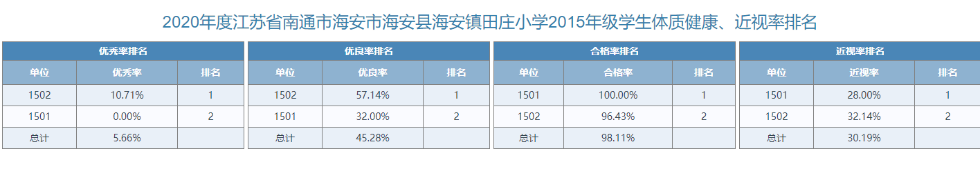 田庄小学学生体质健康公示 来源: 发布时间:2021-07-17 00:00:00 浏览次数: 次 【字体:小 大】 田庄小学学生体质健康公示 文章来源: 发布时间:2021年07月17日 点击数: 次 字体:小 大 [打印文章] [添加收藏] 更多 上一篇:高新区田庄小学2020学年体育与健康课表和学生每天校内体育活动…[ 06-18 ] 下一篇:海安高新区田庄小学2021年招生公告[ 08-05 ] 分享到: 【打印正文】