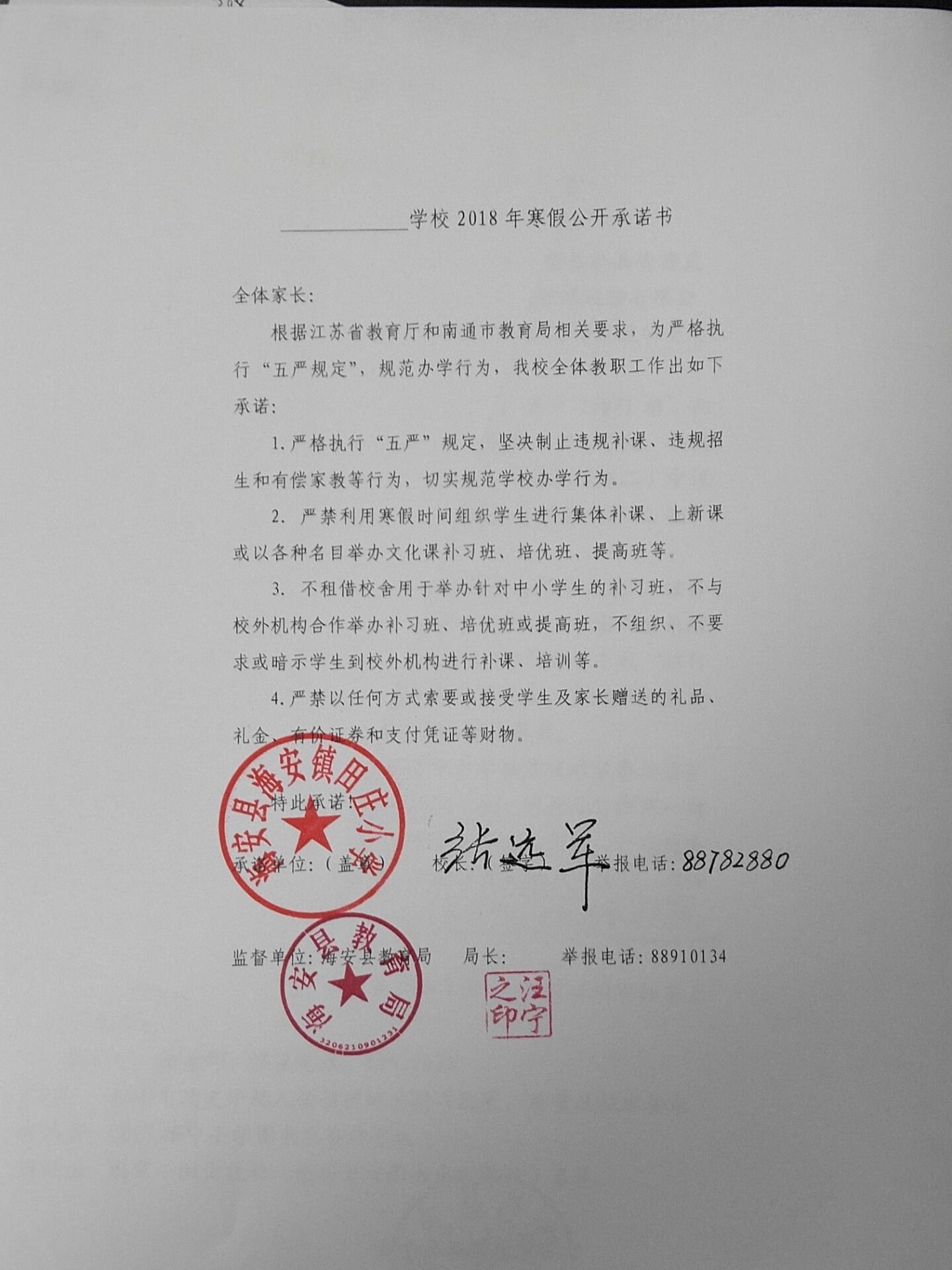 田庄小学2018年寒假公开承诺书 来源: 发布时间:2018-02-03 00:00:00 浏览次数: 次 【字体:小 大】 田庄小学2018年寒假公开承诺书 文章来源:田庄小学 发布时间:2018年02月03日 点击数: 次 字体:小 大 [打印文章] [添加收藏] 更多 上一篇:高新区田庄小学2017年十件大事[ 01-05 ] 下一篇:高新区园庄办事处向田庄小学捐赠图书[ 03-08 ] 分享到: 【打印正文】