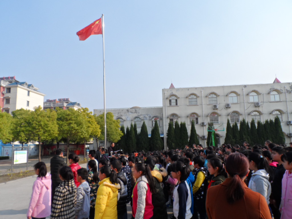 全校师生参加“平安校园行”启动仪式并进行国旗下讲话。