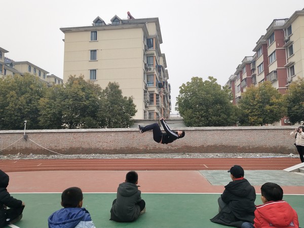 武术教练张天天首先为师生们做了精彩的表演,激发了全体师生学习中华武术的热情。