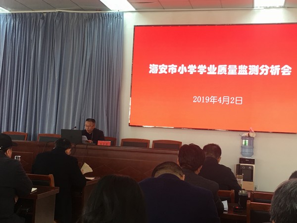 2019年4月2日上午,海安市教育体育局在教师发展中心组织召开了“海安市小学学业质量分析会”。会上海安市教师发展中心三位研训员分别就2018~2019学年度第一学期末语、数、英学科学业监测结果做了深入细致的分析,提出了今后提升我市小学生学业质量的中肯建议。明道小学教育集团丹凤校区、雅周镇中心小学、高新区田庄小学三所学校围绕提高教育教学质量、关爱外来务工人员子女分别做了经验介绍。最后,市局初教科科长严宏、市发展中心主任徐金贵、市局副局长颜敏分别做了重要指示。