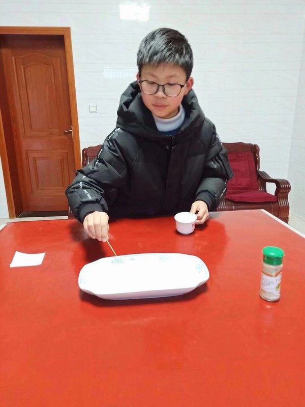 在语数英等课程学习之余,孩子们还积极动手实践。有的帮助父母做力所能及的家务活,有的通过做科学小实验、做手抄报、画“抗疫”宣传画锻炼自己的动手能力,还有的小朋友结合现在的疫情,学唱《农村防疫八个要》并录制小视频,向亲人朋友进行宣传,为白衣天使喝彩!孩子们在玩中学,在学中玩,获得了不少生活中的小知识。