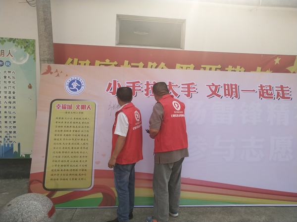 育好文明人,共创文明城。志愿者们向学生、家长和村民发放了《做文明人、创文明城、树文明风倡议书》,向他们宣讲创建知识和生活中的文明细节,让大家充分了解创建文明城市的意义,号召他们积极参与到文明城市创建巩固提升中来,为创建贡献力量。活动中,志愿者还向大家发放了2020年海安市创建全国文明城市模拟调查问卷,最后学生和家长在宣传板上签名。