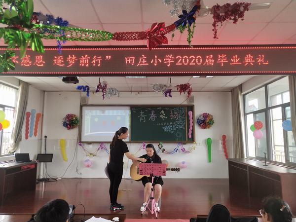 六(2)班的卢宇霏同学代表所有毕业生发言,感言中充满留恋,充满不舍,充满感激。活动最后,田庄小学校长张远军发表了热情洋溢的讲话,他告诉孩子们毕业不是休止符,而是对明天的呼唤,是充满希望和奋斗的起点。他期望同学们在新的求学之路上,为自己开辟一条新的人生道路,为母校增光添彩。