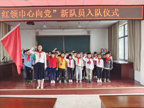 入队仪式在庄严雄壮的出旗曲中正式开启。同学们行队礼,高唱《中国少年先锋队队歌》,以表他们对党的忠诚与热爱。大队辅导员李梅宣布了第二批加入少先队组织的名单。入队前,二年级各中队召开了“少先队入队知识”主题队会,预备队员接受了充分的队前教育,达到了“六知、六会、一做”的标准。52名学生提出了入队申请,成为第二批加入少先队组织的成员。在火红的队旗下,老队员为每位新入队的少先队员系上鲜艳的红领巾。新队员用他们稚嫩的声音宣读誓词,表达他们坚定的决心。随后,新、老队员代表进行了表态发言,他们表示要好好学习,好好锻炼,时刻准备着,为共产主义事业而奋斗!