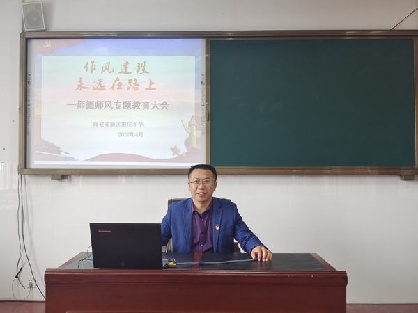 田庄小学党支部一直深化教职工师德师风建设,积极营造正风肃纪的良好氛围,净化风清气正的政治生态,凝聚共识把立德树人工作落到实处。组织全体教职工学习师德典型,在行动上向优秀教师看齐;强化纪法教育,在思想上自觉与党中央保持高度一致;不断提高政治站位,坚守道德底线,不触碰纪律红线,在作风建设中深学笃行。在师德师风精神建设的引领下,学校的课堂教学、疫情防控、延时服务、学困生转化等工作都取得了喜人的成绩。全校教职工在工作中用“爱心、细心、耐心、恒心”为学生们筑起爱的蓝天。