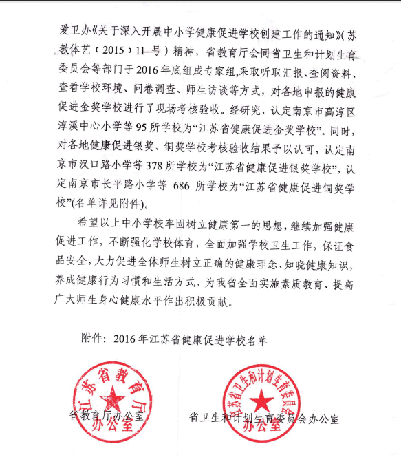 田庄小学被评为江苏省2016年健康促进银奖学校 来源: 发布时间:2017-06-23 00:00:00 浏览次数: 次 【字体:小 大】 田庄小学被评为江苏省2016年健康促进银奖学校 文章来源:田庄小学 发布时间:2017年06月23日 点击数: 次 字体:小 大 [打印文章] [添加收藏] 更多 上一篇:关于公布2017年海安县中小学班主任基本功大赛获奖名单的通知[ 06-06 ] 下一篇:田庄小学被评为海安县示范家长学校[ 07-03 ] 分享到: 【打印正文】