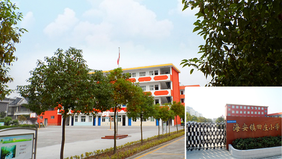 海安县海安镇田庄小学地处县城西南,在开元大道(海田路)和黄海大道交汇处。现田庄小学施教区为整个海安县工业园区。