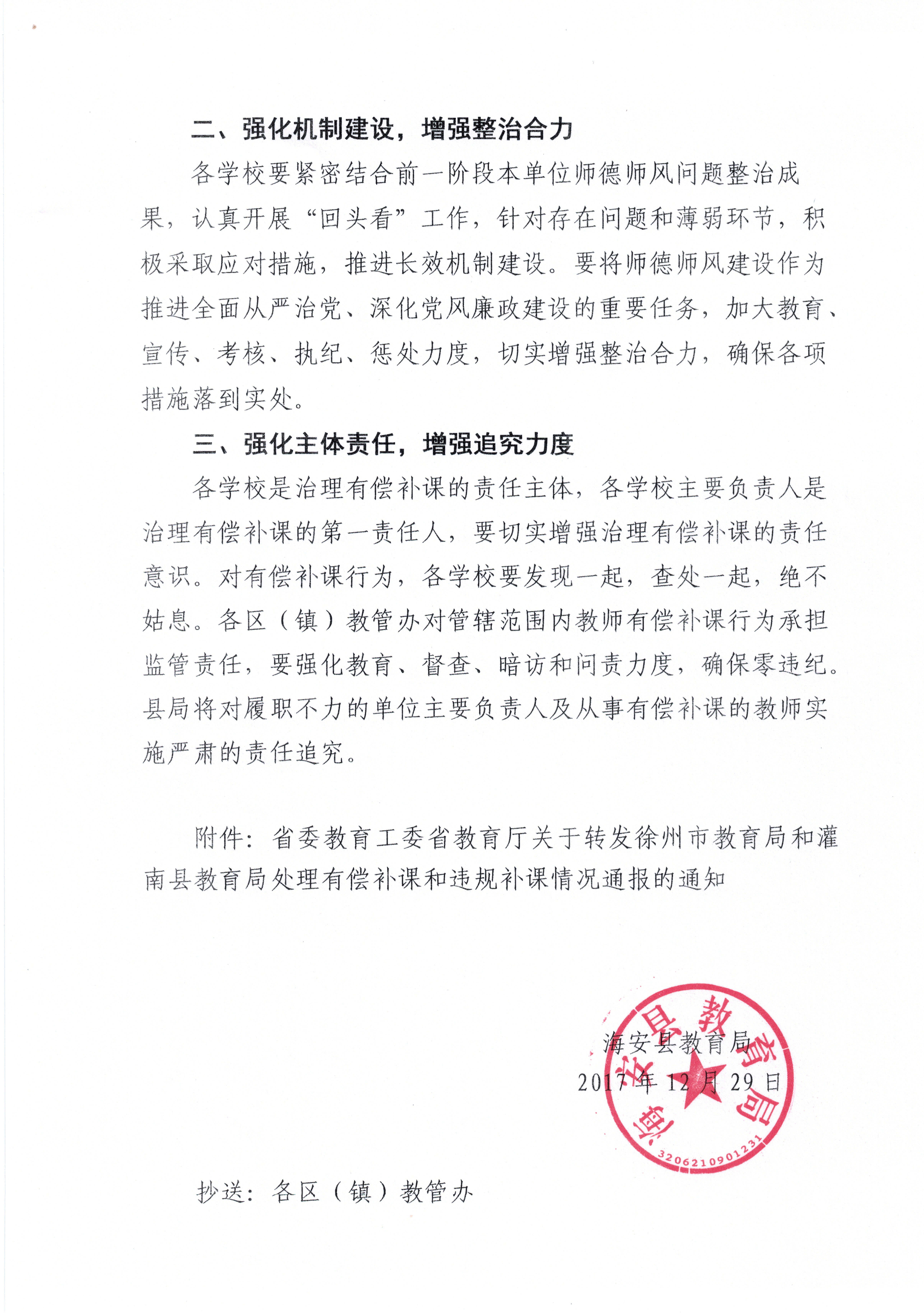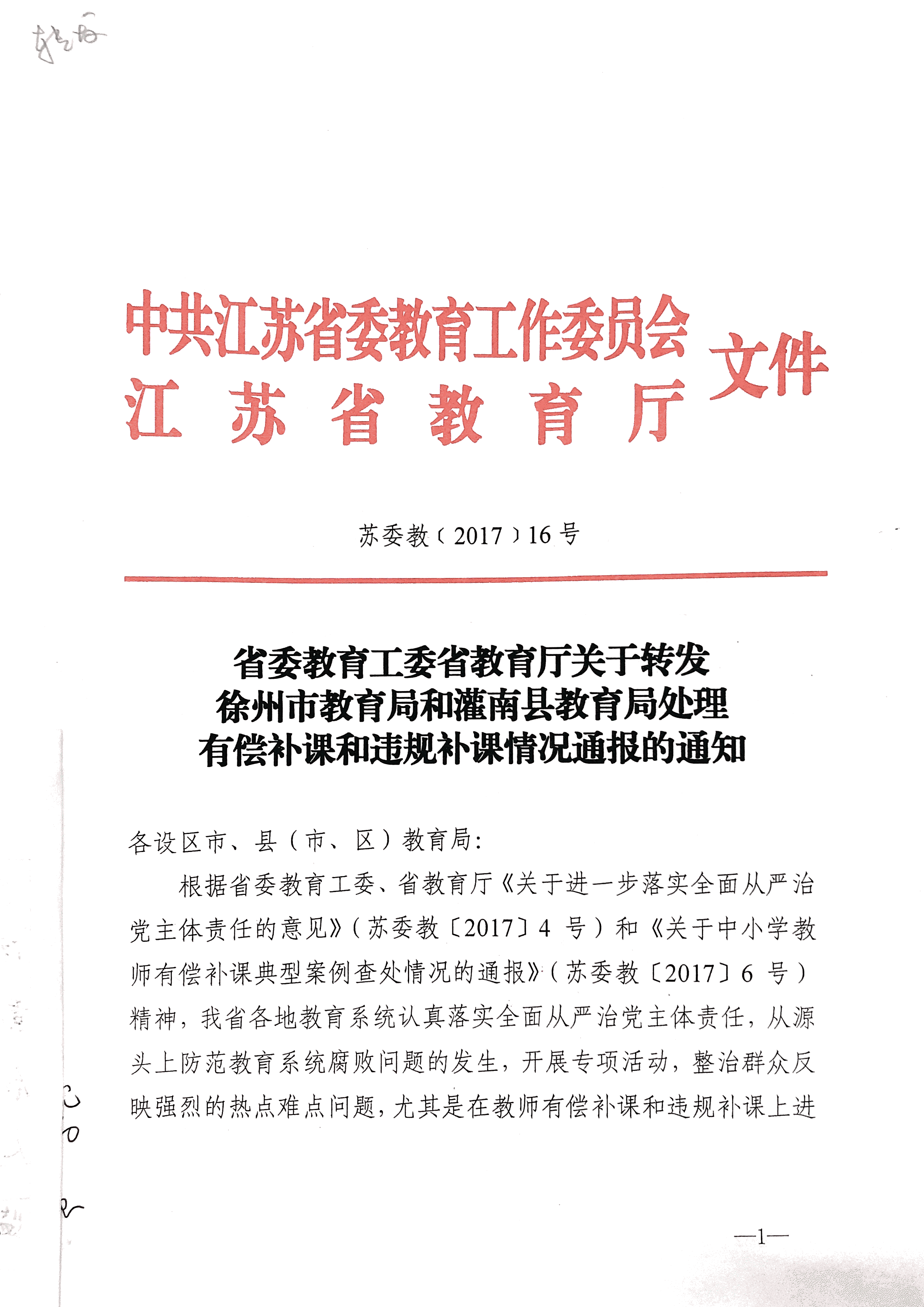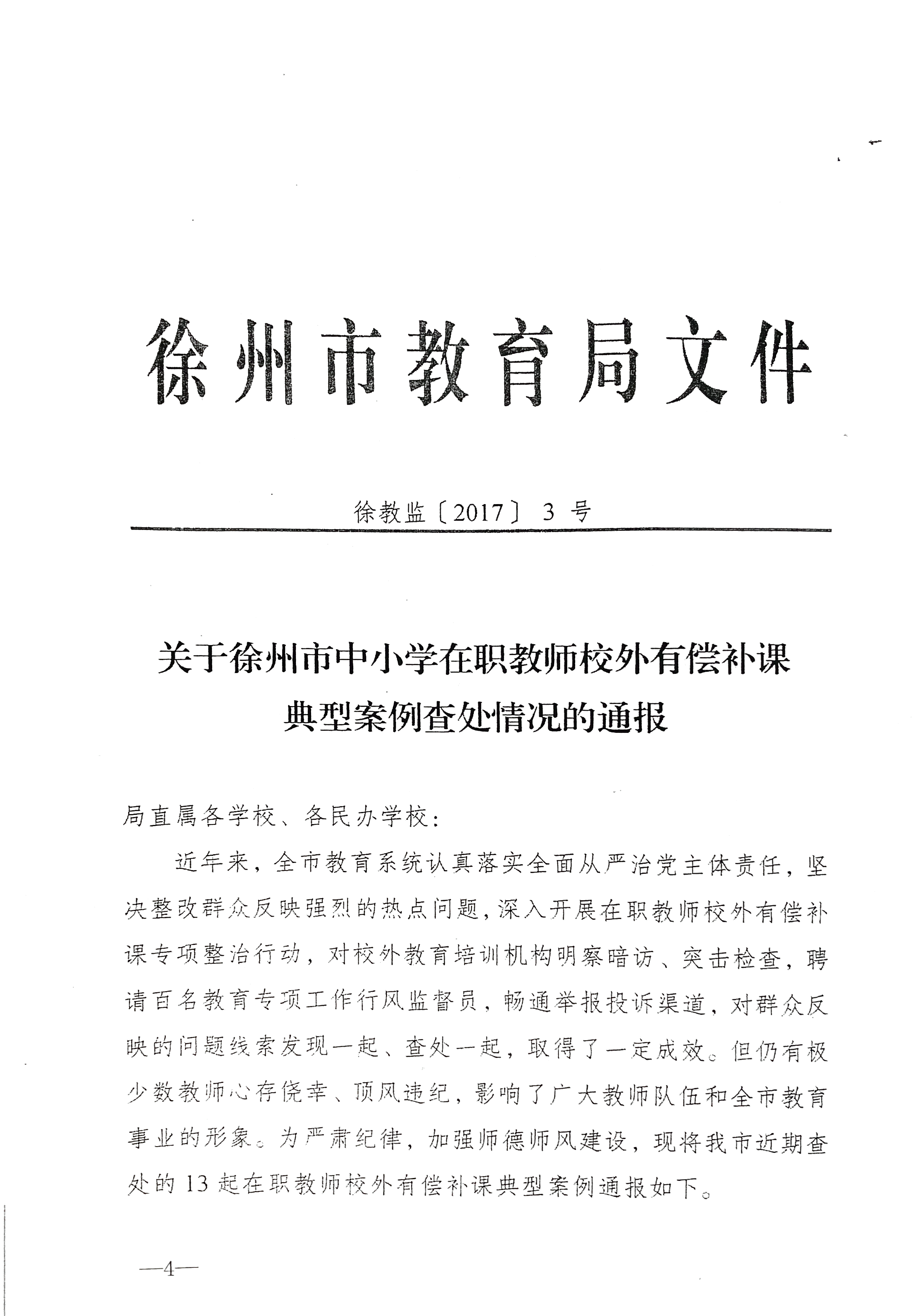 关于转发《省委教育工委省教育厅关于中小学教师有偿补课典型案例查处情况的通报》的通知 来源: 发布时间:2018-01-21 00:00:00 浏览次数: 次 【字体:小 大】 关于转发《省委教育工委省教育厅关于中小学教师有偿补课典型案例查处情况的通报》的通知 文章来源: 发布时间:2018年01月21日 点击数: 次 字体:小 大 [打印文章] [添加收藏] 更多 上一篇:省委教育工委省教育厅关于中小学教师有偿补课典型案例查处情况…[ 07-03 ] 下一篇:高新区海田教育党支部举行专题组织生活会[ 11-26 ] 分享到: 【打印正文】