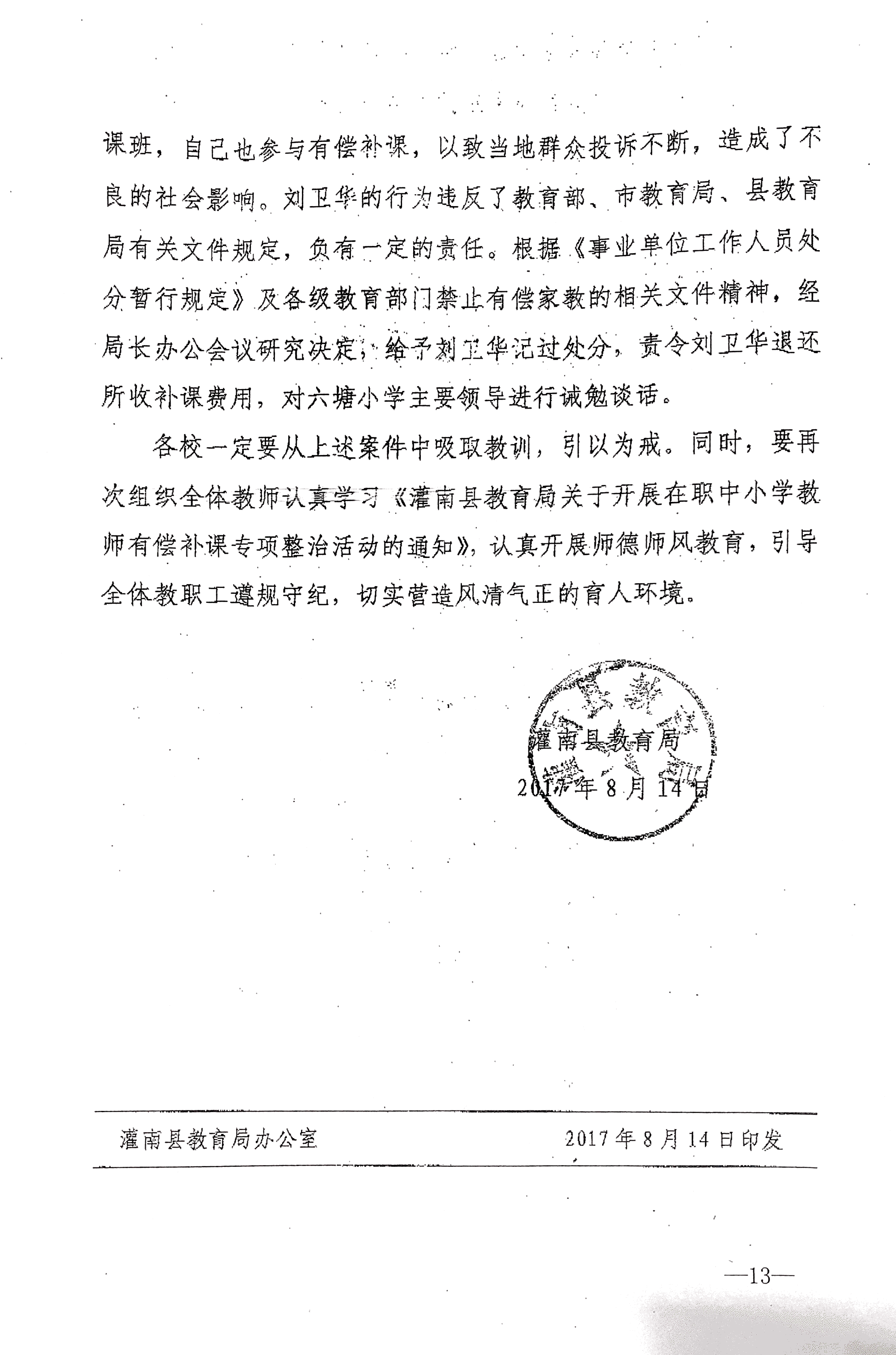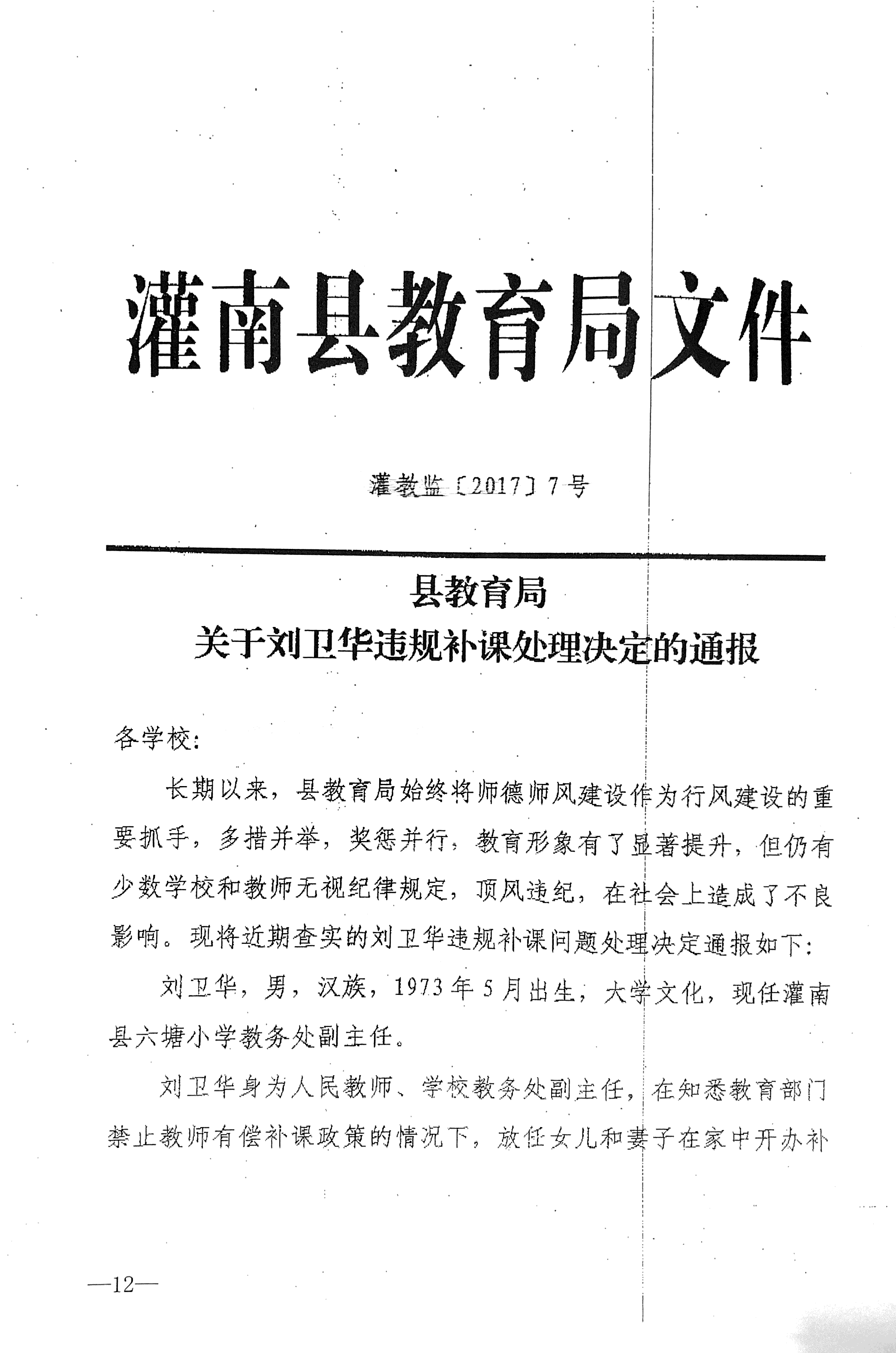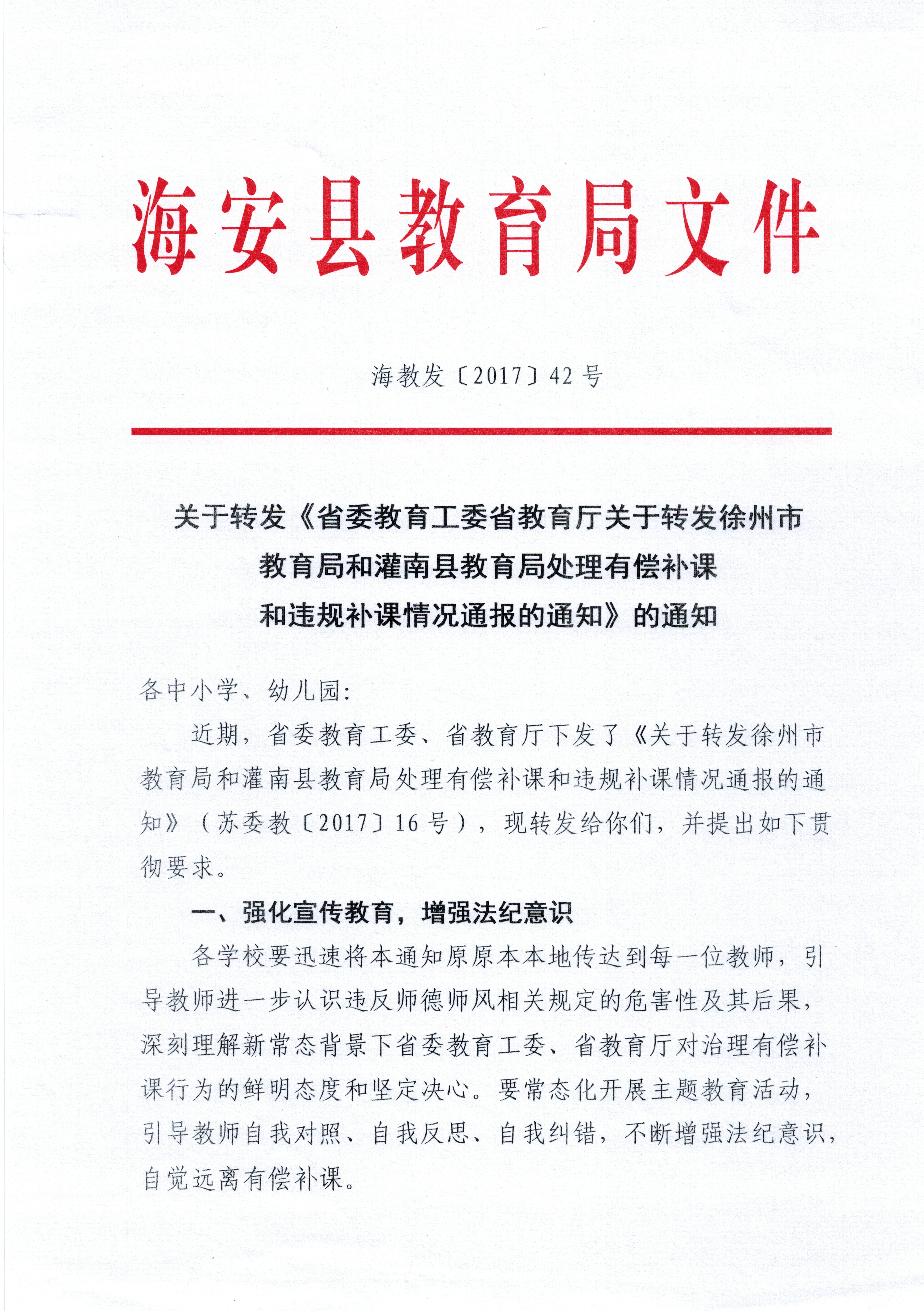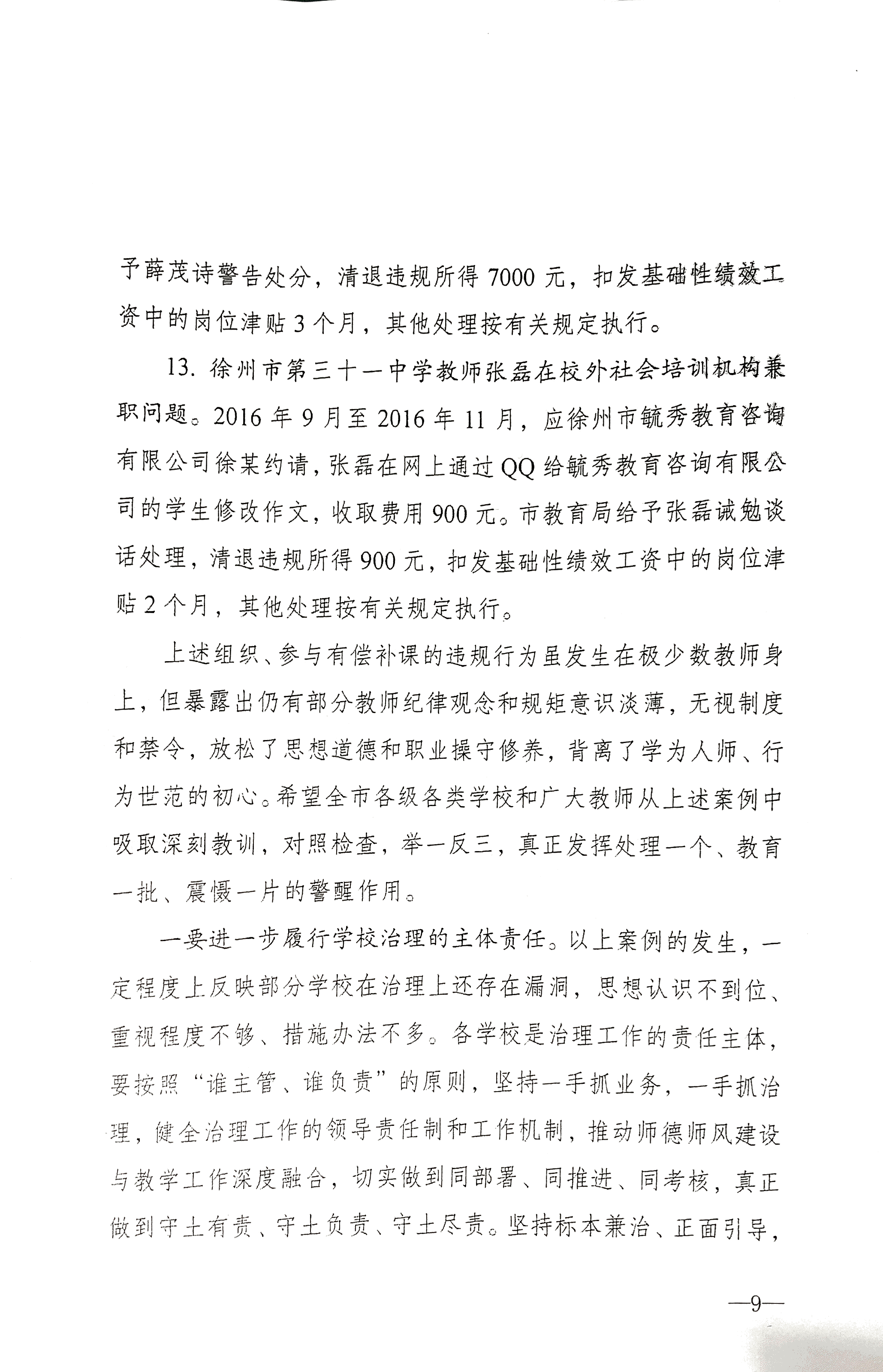 关于转发《省委教育工委省教育厅关于中小学教师有偿补课典型案例查处情况的通报》的通知 来源: 发布时间:2018-01-21 00:00:00 浏览次数: 次 【字体:小 大】 关于转发《省委教育工委省教育厅关于中小学教师有偿补课典型案例查处情况的通报》的通知 文章来源: 发布时间:2018年01月21日 点击数: 次 字体:小 大 [打印文章] [添加收藏] 更多 上一篇:省委教育工委省教育厅关于中小学教师有偿补课典型案例查处情况…[ 07-03 ] 下一篇:高新区海田教育党支部举行专题组织生活会[ 11-26 ] 分享到: 【打印正文】